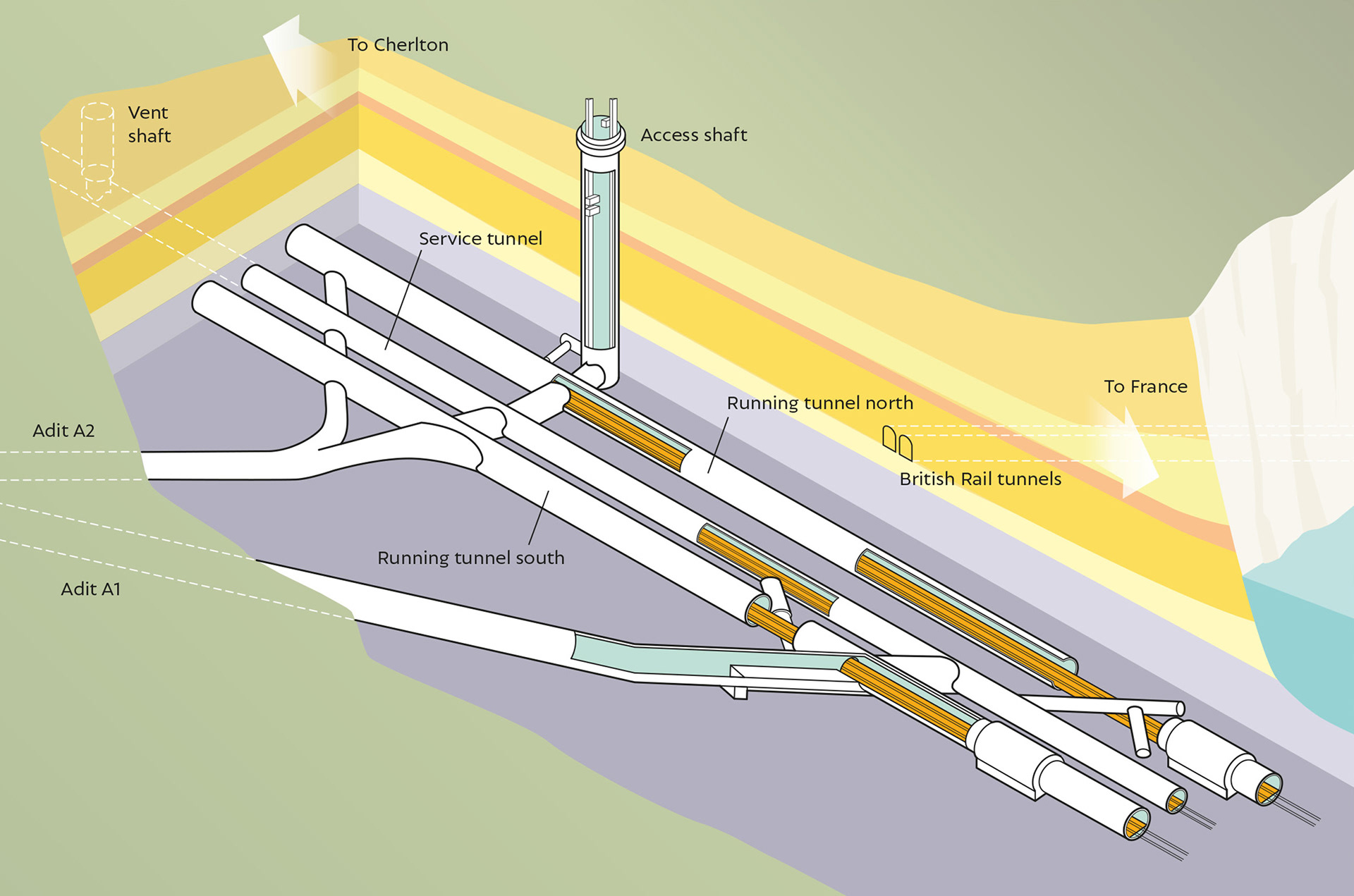 Tunnel layout below Shakespeare Cliff.