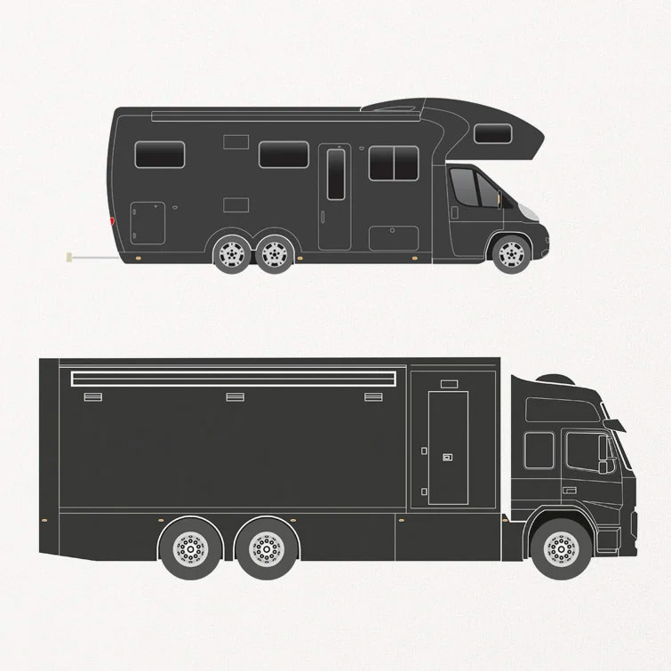 Sky cycling team's accommodation and equipment support lorries.
